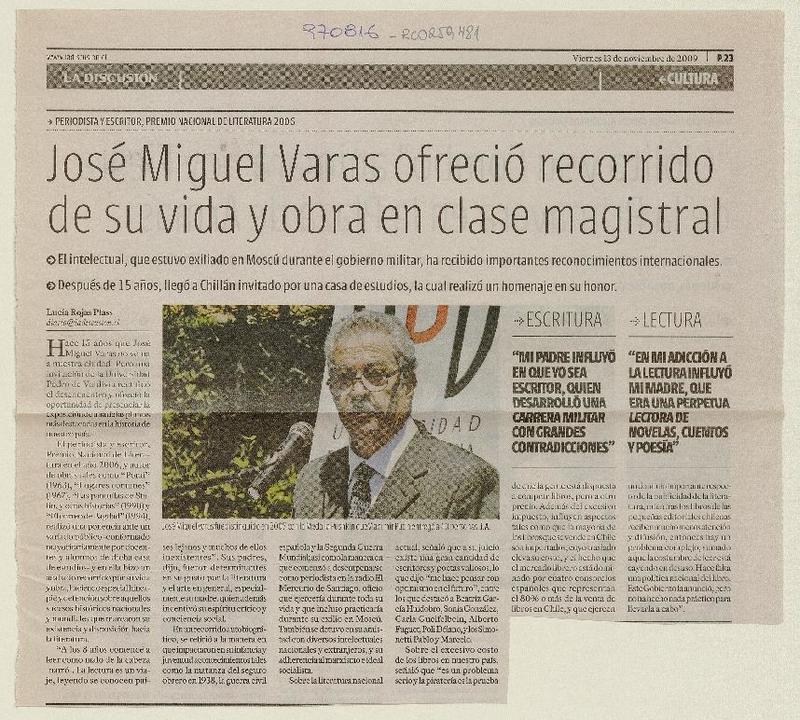 José Miguel Varas ofreció recorrido de su vida y obra en clase magistral [artículo] Lucía Rojas Plass.