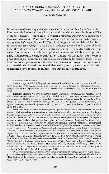 Una comedia burlesca del siglo XVIII, El muerto resucitado, de Lucas Merino y Solares [artículo] Carlos Mata induráin.