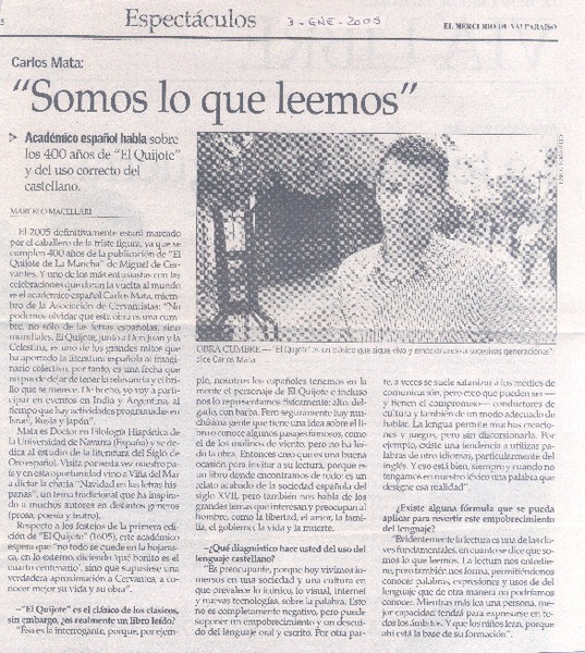 Mata Carlos somos lo que leemos [artículo] : Marcelo Macellari.