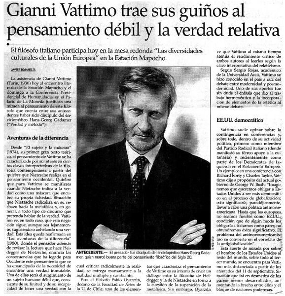 Gianni Vattimo trae sus guiños al pensamiento débil y la verdad relativa [artículo] Javier Rojahelis.