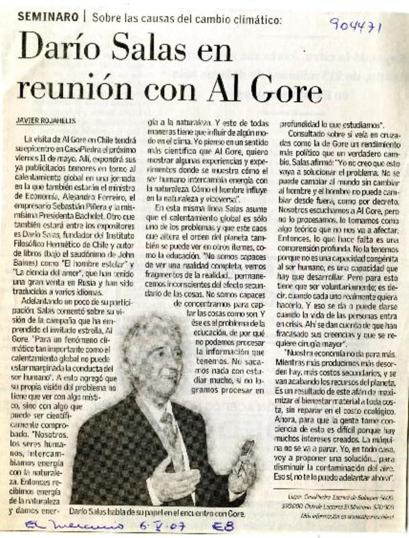 Darío Salas en reunión con Al Gore. [artículo] Javier Rojahelis.