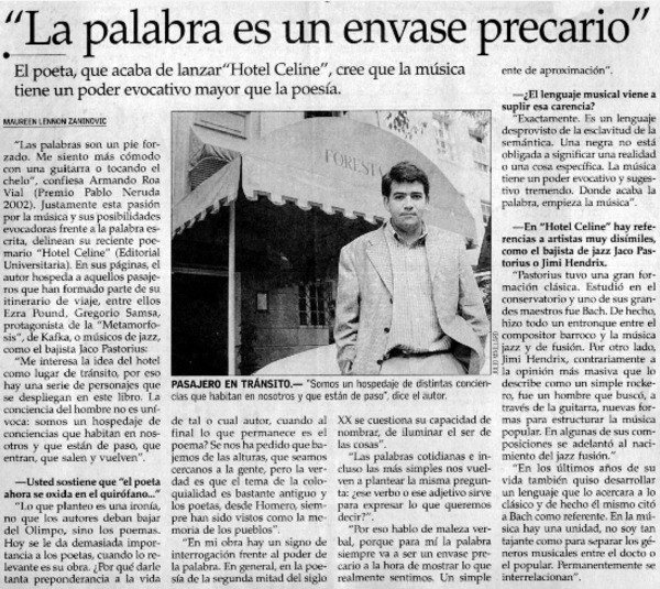 La palabra es un envase precario" [entrevistas] [artículo] : Maureen Lennon Zaninovic.