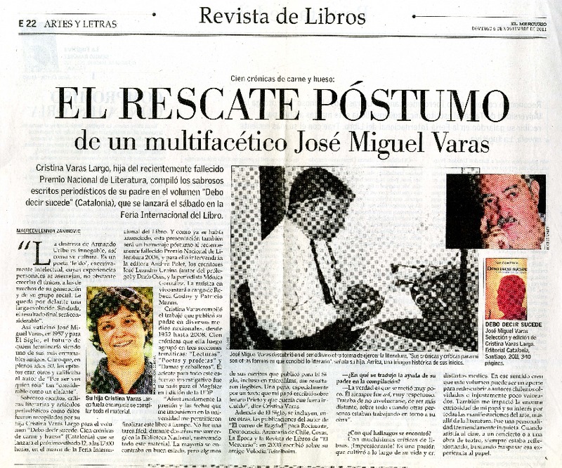 El rescate póstumo de un multifacético José Miguel Varas (entrevista) [artículo] Maureen Lennon Zaninovic.