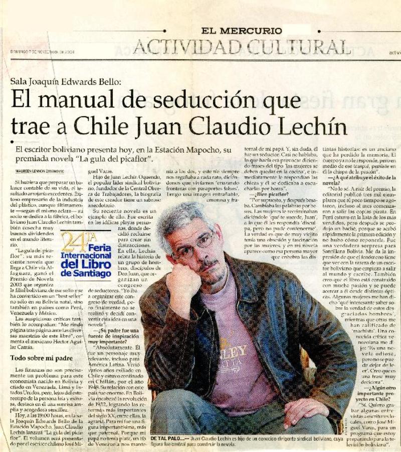 El manual de seducción que trae a Chile Juan Claudio Lechín (entrevista) [artículo] Maureen Lennon Zaninovic.