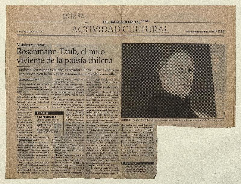 Rosenmann-Taub, el mito viviente de la poesía chilena [entrevista] [artículo] : Maureen Lennon Zaninovic.