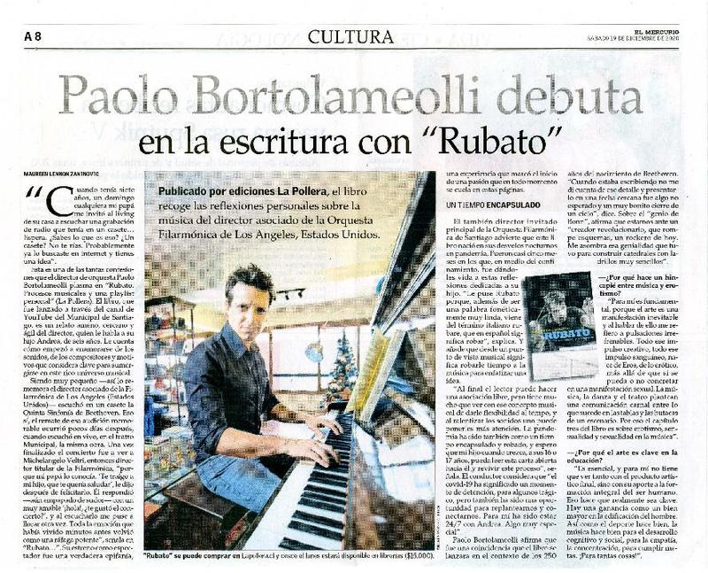 Paolo Bartolameolli debuta en la escritura con "Rubato" [entrevista] [artículo] : Maureen Lennon Zaninovic.