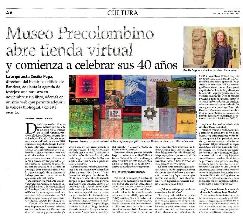 Museo Precolombino abre tienda virtual y comienza a celebrar sus 40 años [entrevista] [artículo] : Maureen Lennon Zaninovic.