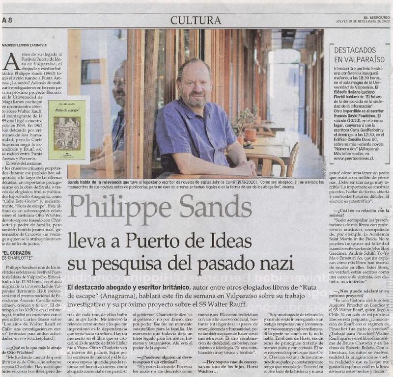 Philippe Sands lleva a Puerto de Ideas su pesquisa del pasado nazi [entrevista] [artículo] : Maureen Lennon Zaninovic.