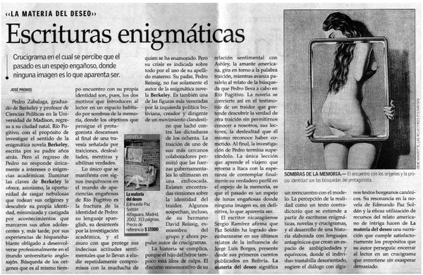 Paz Soldán, Edmundo - Autores bolivianos - Materia del deseo, La