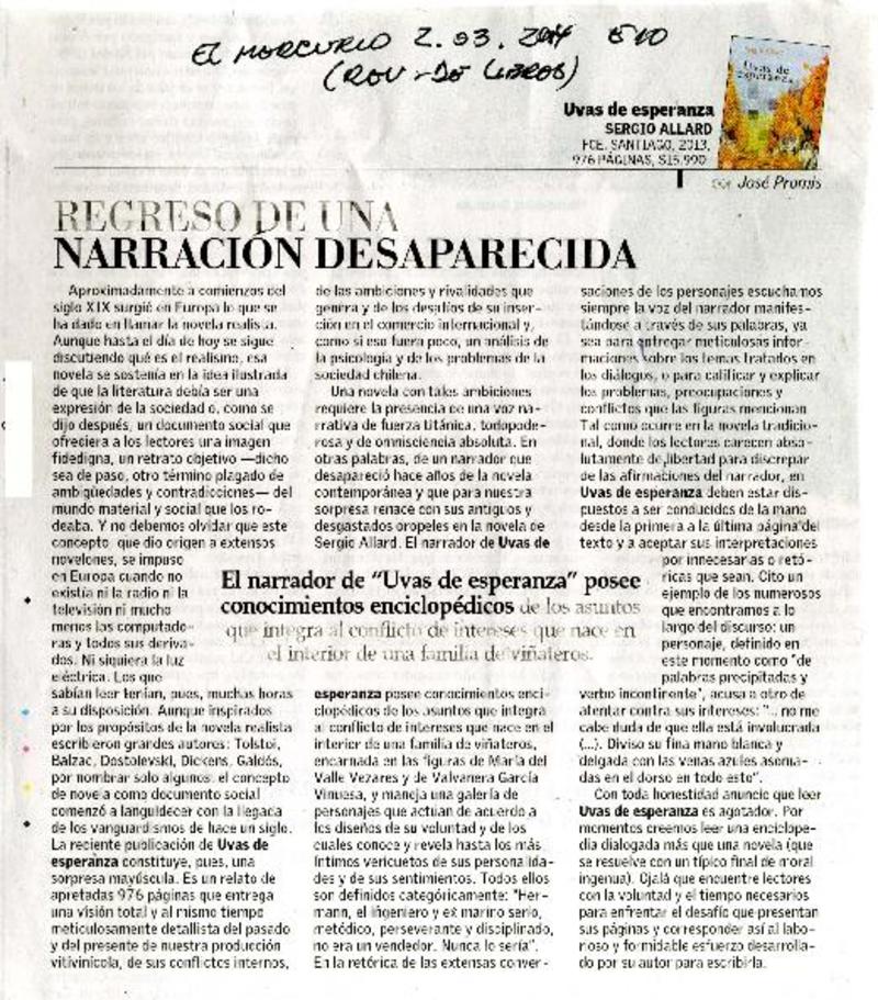 Autores chilenos - Allard, Sergio - Uvas de esperanza