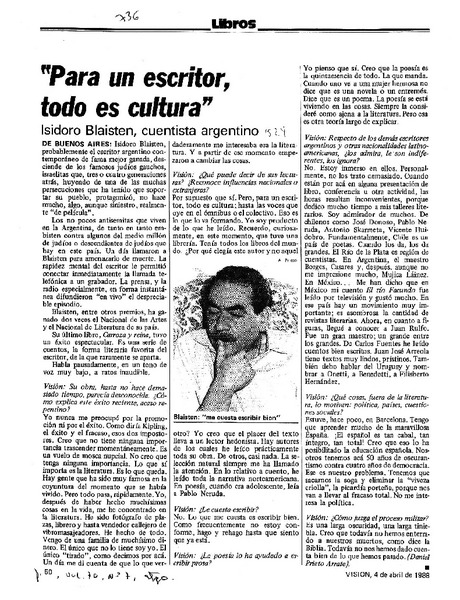 Para un escritor, todo es cultura" [artículo] Daniel Prieto Arrate.