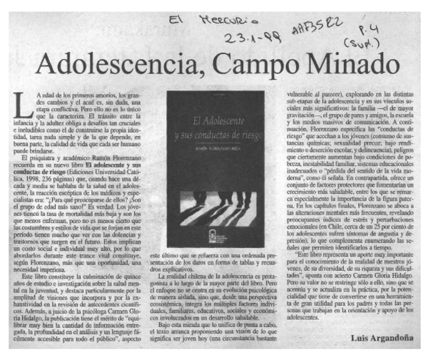 Adolescencia, campo minado [artículo] Luis Argandoña.