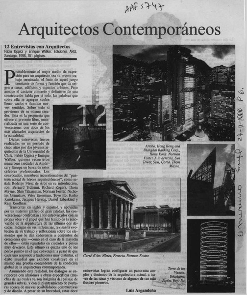 Arquitectos contemporáneos [artículo] Luis Argandoña.