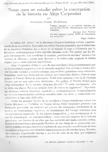 Notas para un estudio sobre la concepción de la historia en Alejo Carpentier [artículo] Salvador Bueno.