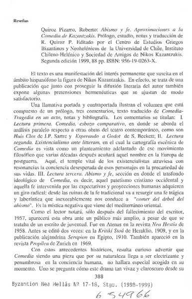 Abismo y fe [artículo] M. Mercedes López Delgado <y> Roberto Quiroz Pizarro
