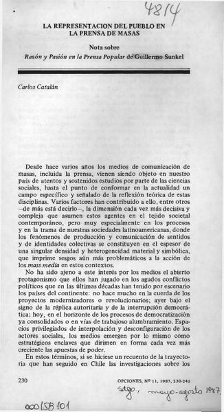 La representación del pueblo en la prensa de masas [artículo] Carlos Catalán.
