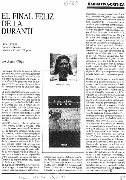 El final feliz de la Duranti [artículo] Agata Gligo.