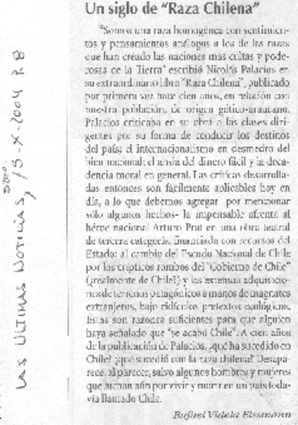 Un siglo de "Raza chilena" [artículo] Rafael Videla Eissmann.
