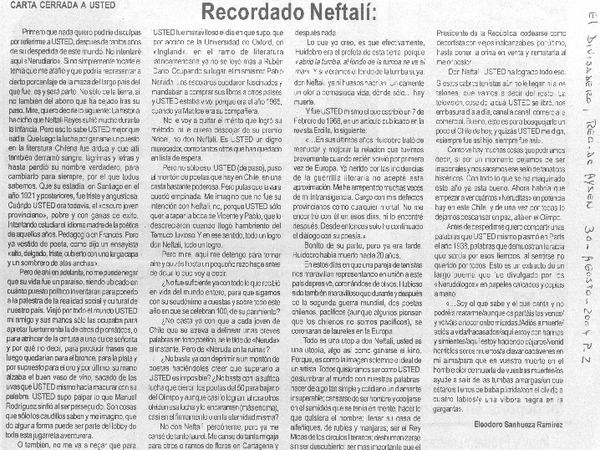 Recordado Neftalí: [artículo] Eleodoro Sanhueza Ramírez