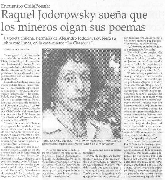 Autores chilenos - Entrevista - Jodorowsky, Raquel