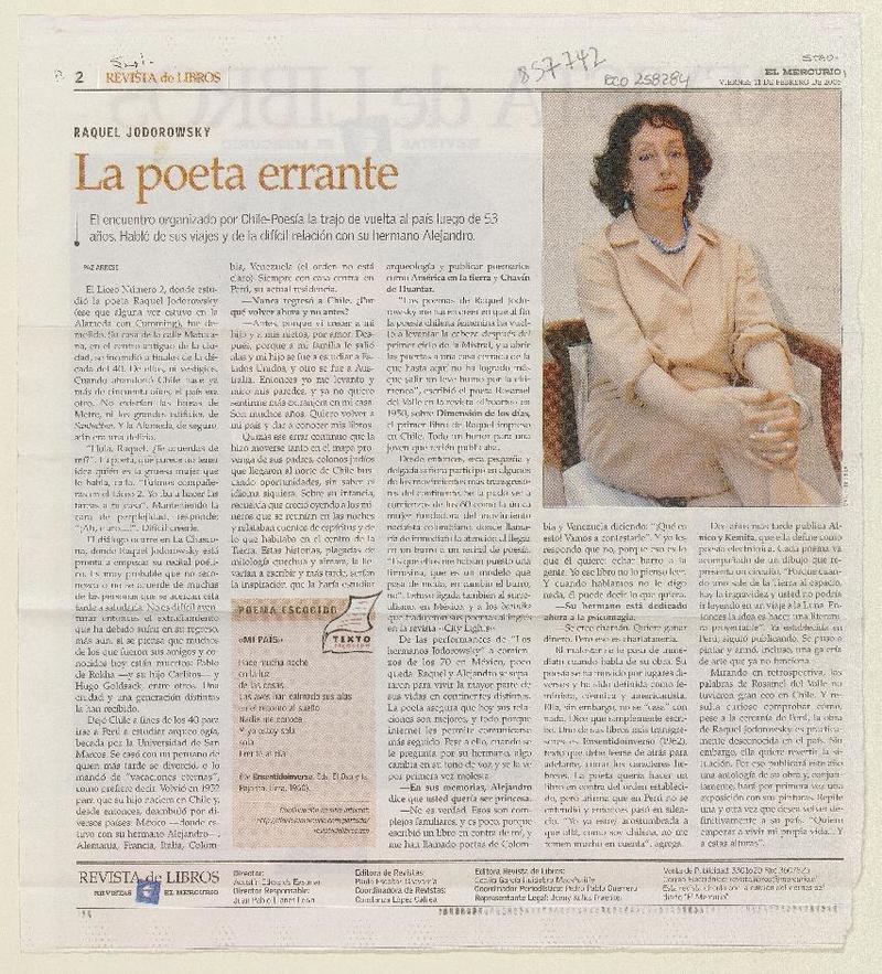 La Poeta errante (entrevistas) [artículo] Paz Arrese
