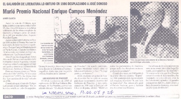 Murió Premio Nacional Enrique Campos Menéndez [artículo]Javier García.