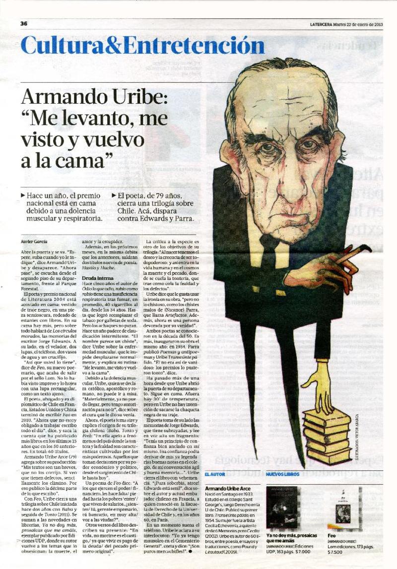 Armando Uribe: "Me levanto, me visto y vuelvo a la cama" [artículo] Javier García.