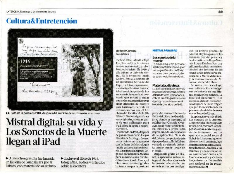 Mistral digital: su vida y Los Sonetos de la Muerte llegan al iPad [artículo] Roberto Careaga
