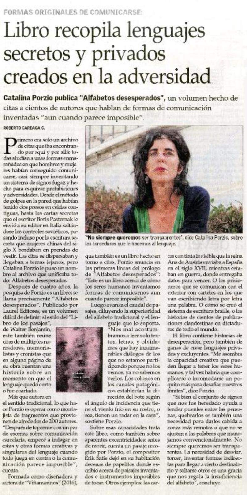 Libro recopila lenguajes secretos y privados creados en la adversidad [artículo] Roberto Careaga C.