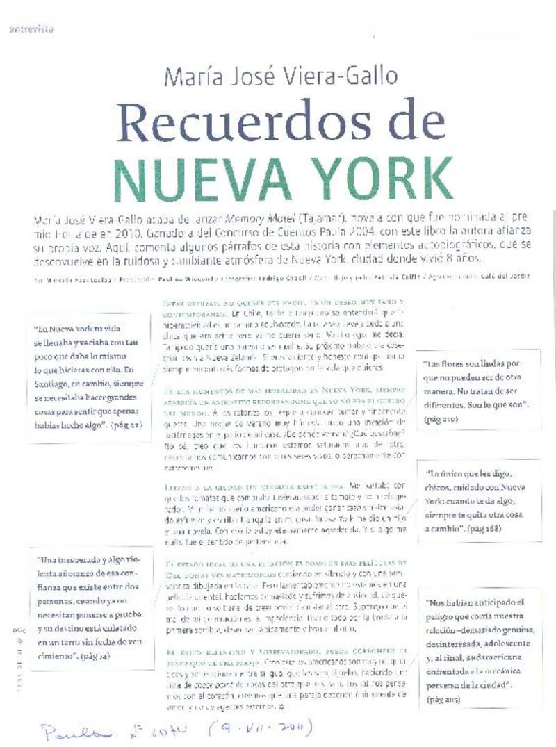 Recuerdos de Nueva York (entrevista) [artículo] Marcela Fuentealba.