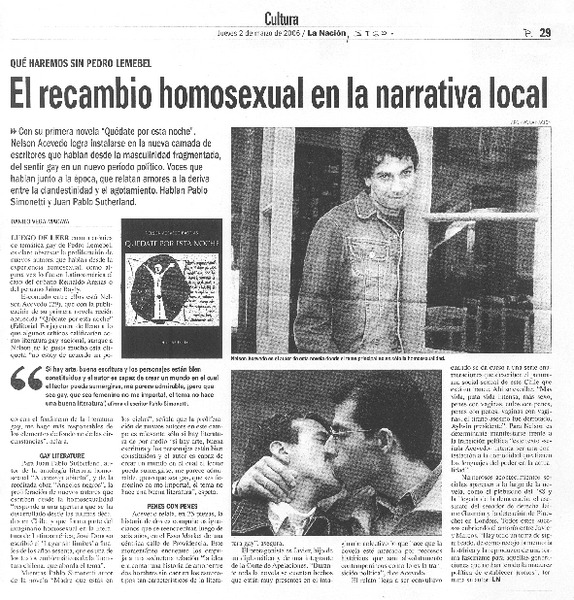 El recambio homosexual en la narrativa local [artículo] Danilo Vega Macaya.