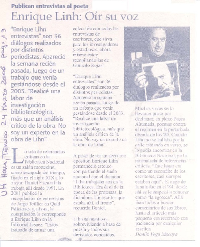 Enrique Lihn: Oír su voz [artículo] Danilo Vega Macaya.