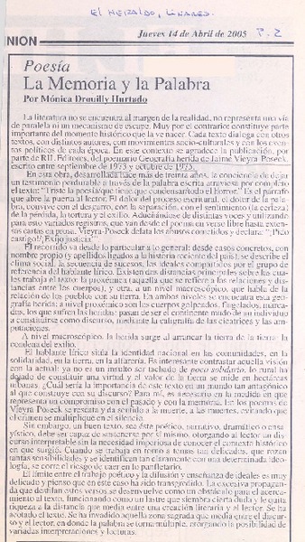 Poesía del desamparo [artículo] por Mónica Drouilly Hurtado.