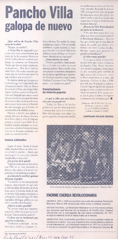 Pancho Villa galopa de nuevo (entrevista) [artículo] Leopoldo Pulgar Ibarra.