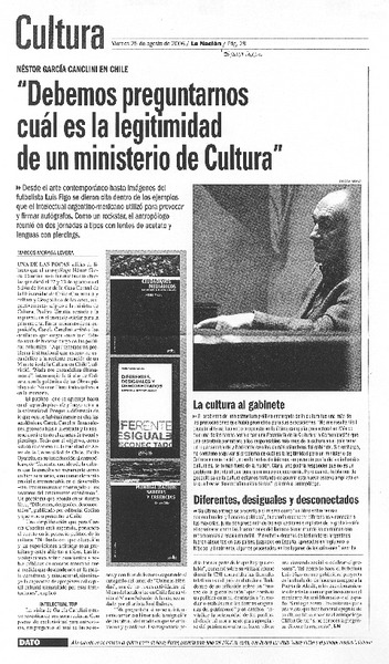 Debemos preguntarnos cuál es la legitimidad de un ministerio de Cultura [artículo] Marcos Moraga Lovera.