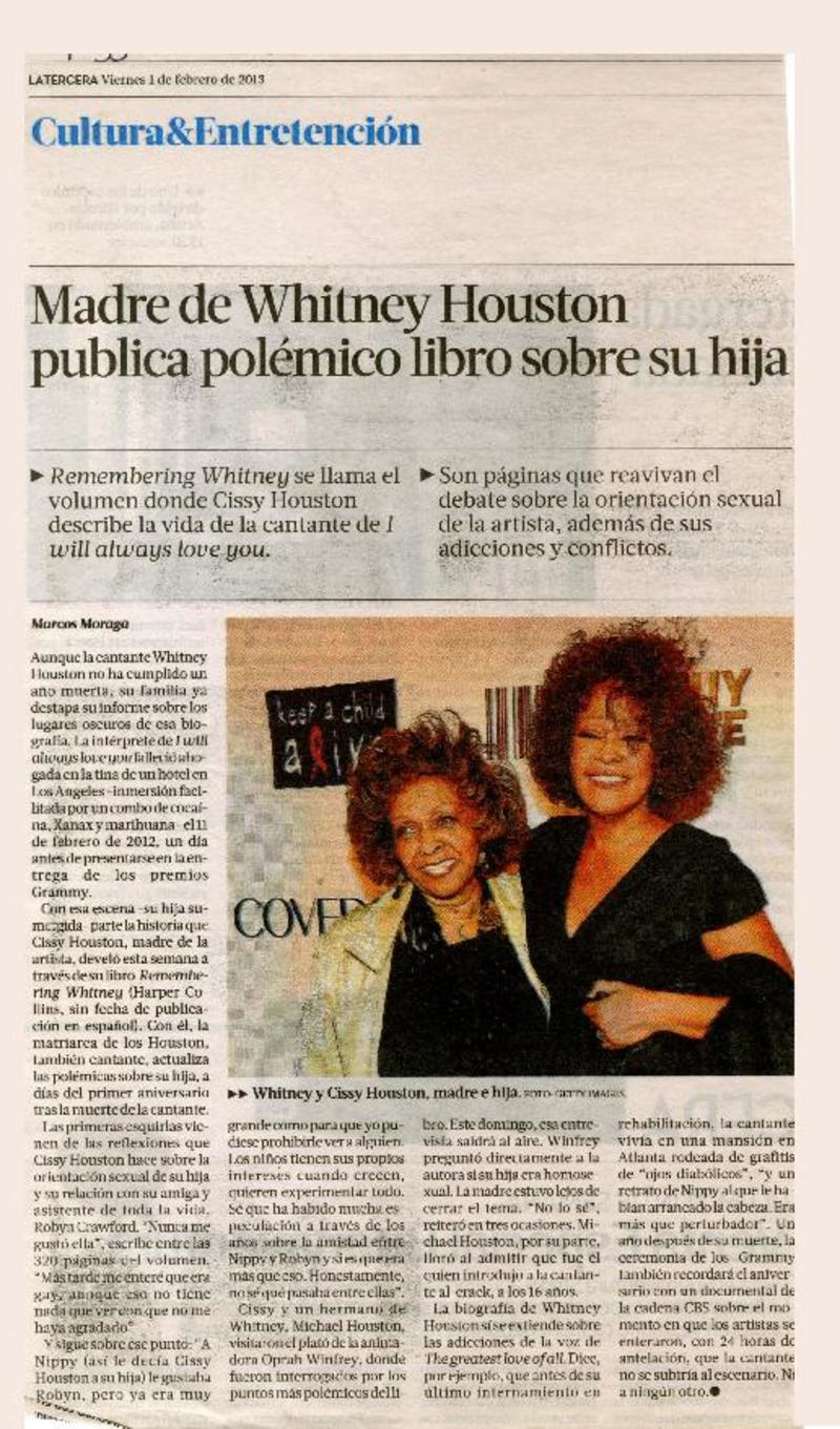 Madre de Whitney Houston publica polémico libro sobre su hija [artículo] Marcos Moraga.