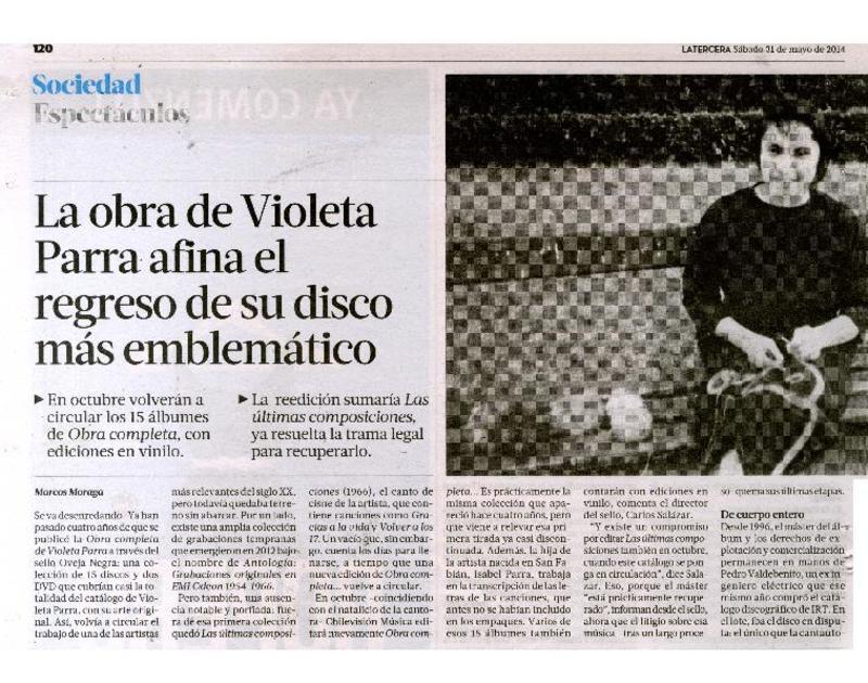 La obra de Violeta Parra afina el regreso de su disco más emblemático [artículo] Marcos Moraga