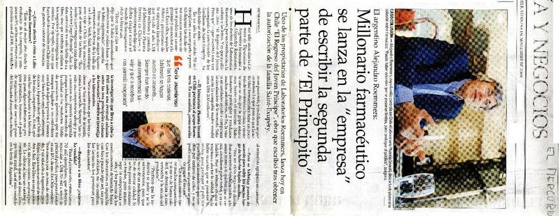 Millonario farmacéutico se lanza en la "empresa" de escribir la segunda parte del "El Pincipito" (entrevista) [artículo] Victoria Reyes P.