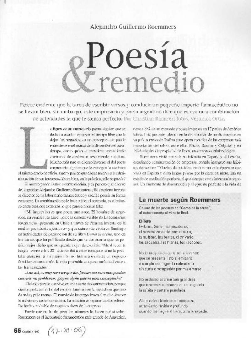 Poesía y remedio (entrevista) [artículo] Chriatian Ramírez.