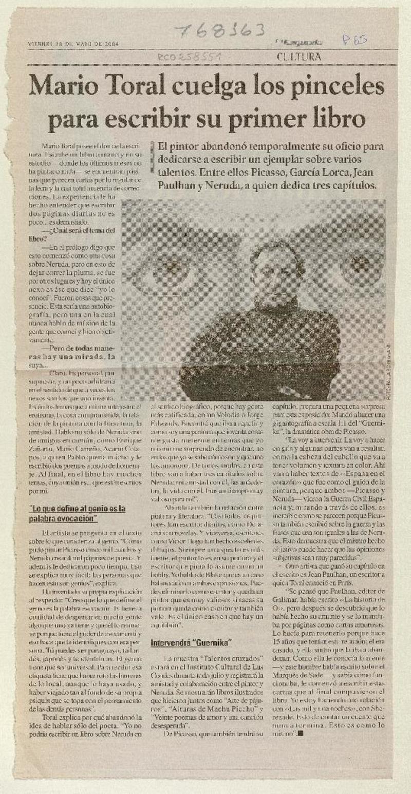 Mario Toral cuelga los pinceles para escribir su primer libro. [artículo]