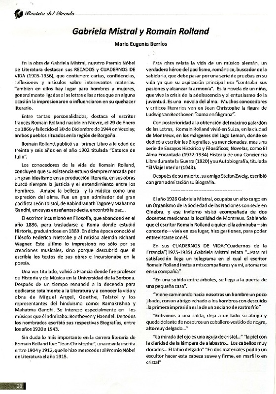 Crónicas [artículo] María Eugenia Berríos Carrasola.