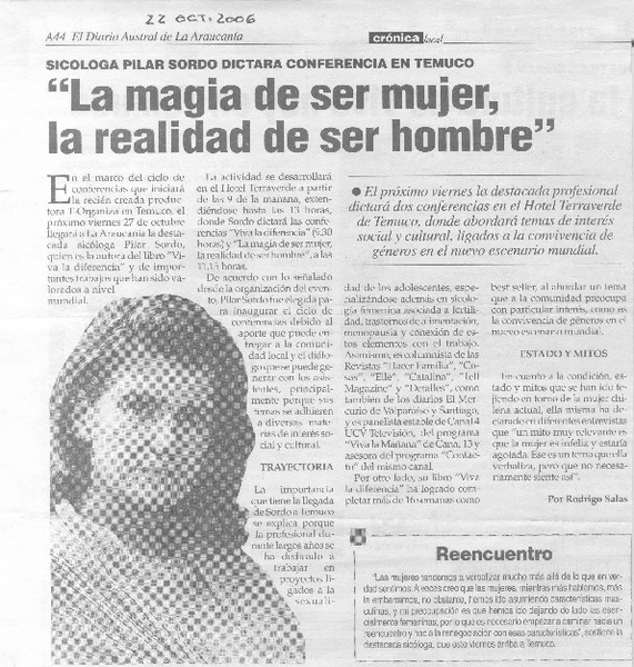 "La magia de ser mujer, la realidad de ser hombre" [artículo]Rodrigo Salas.