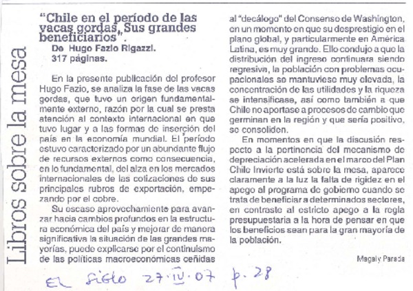 Chile en el período de las vacas gordas [artículo] Magaly Parada.
