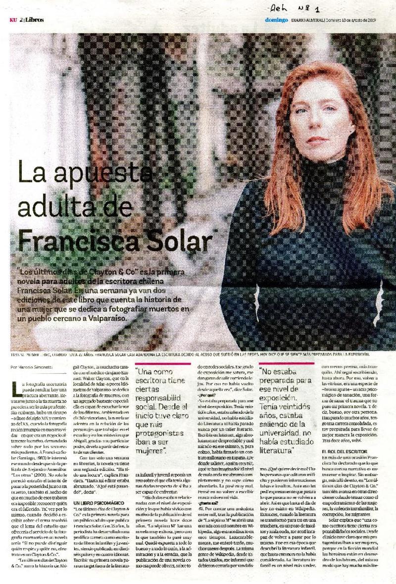 Autoras chilenas - Entrevistas - Solar, Francisca - Los últimos días de Clayton & Co