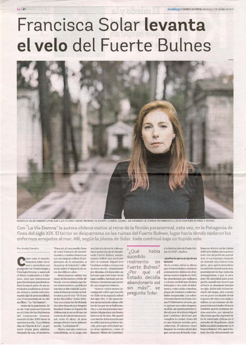 Francisca Solar levanta el velo del Fuerte Bulnes [entrevista] [artículo] : Amelia Carvallo.