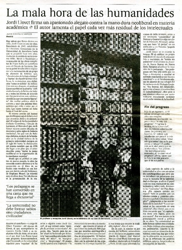 La mala hora de las humanidades [artículo] Javier Rodríguez Marcos.