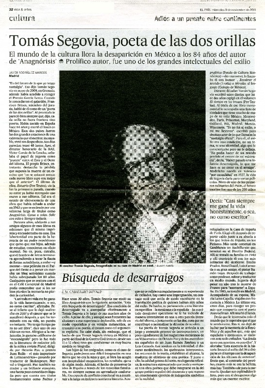 Tomás Segovia, poeta de las dos orillas [artículo] Javier Rodríguez Marcos.