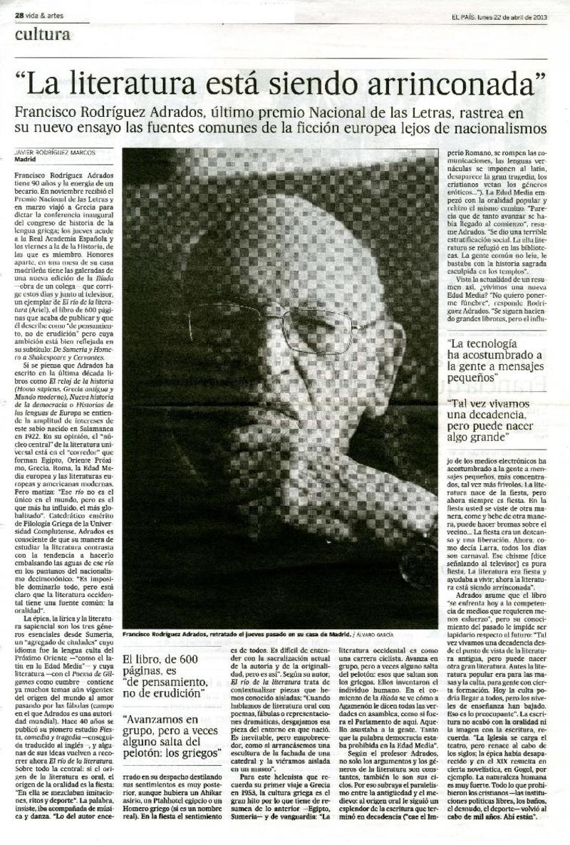 "La literatura está siendo arrinconada" [artículo] Javier Rodríguez Marcos.