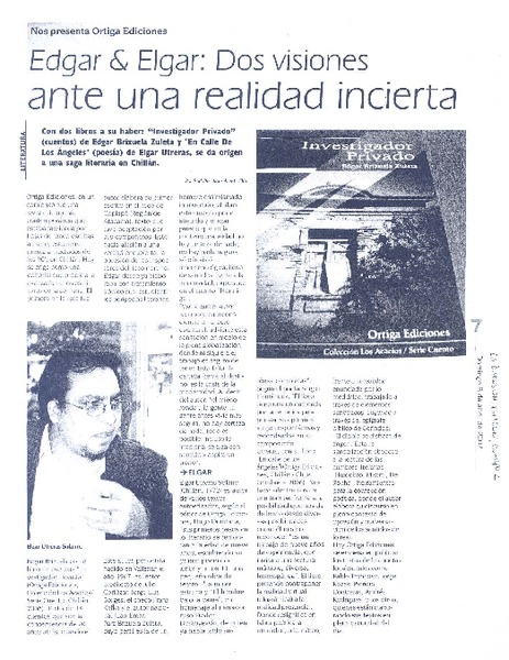 Autores chilenos - Brizuela Zuleta, Edgar Samuel - Investigador privado - Utreras Solano, Elgar - En calle de Los Ángeles