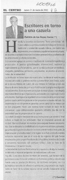 Escritores en torno a una cazuela [artículo] Patricio de los Reyes Ibarra